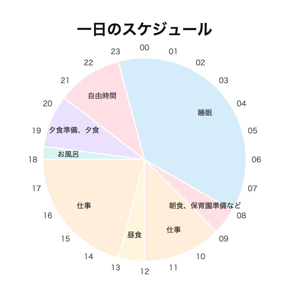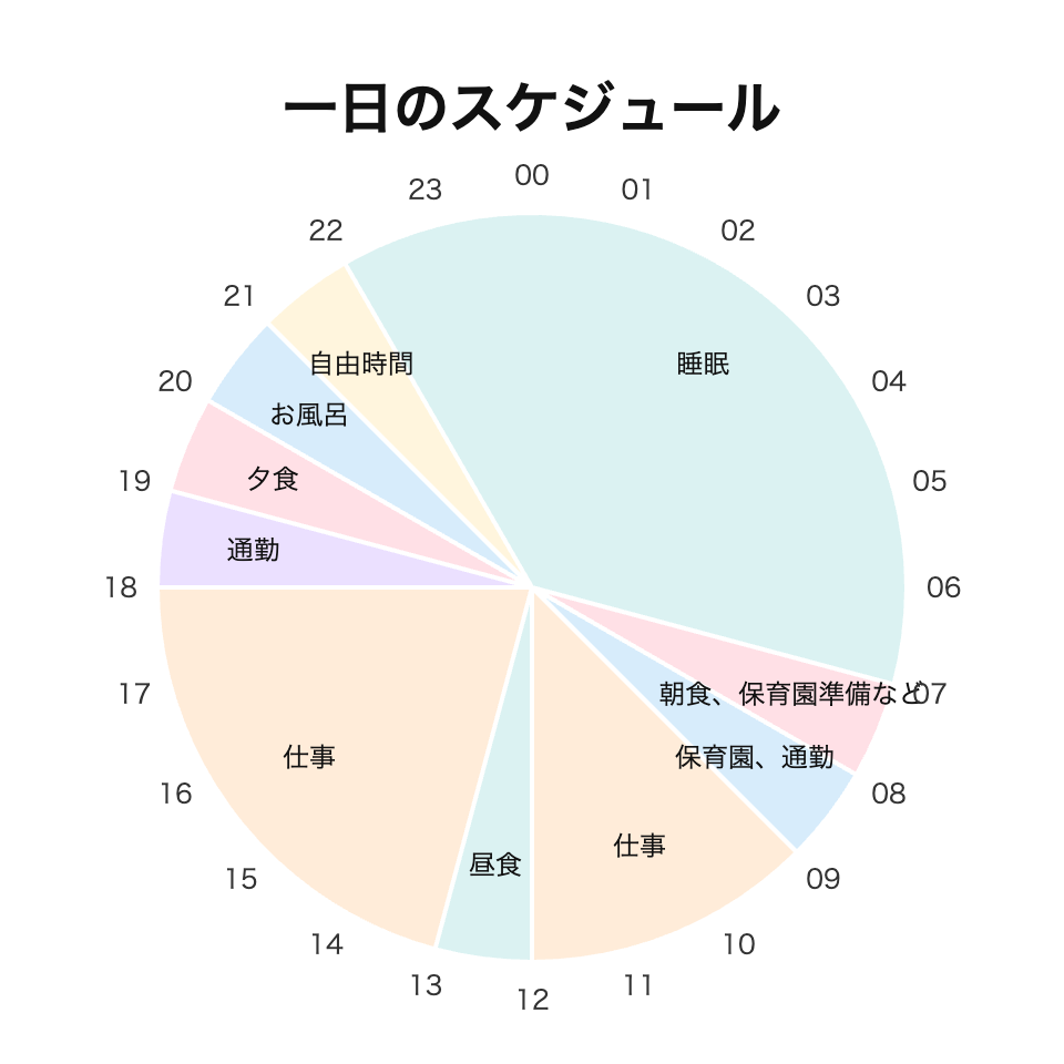 - 朝は主に妻が担当してくれているが自分の朝食準備や保育園送り迎えは必要。小学校に上がったら不要になるが、あと6年はこれが続く